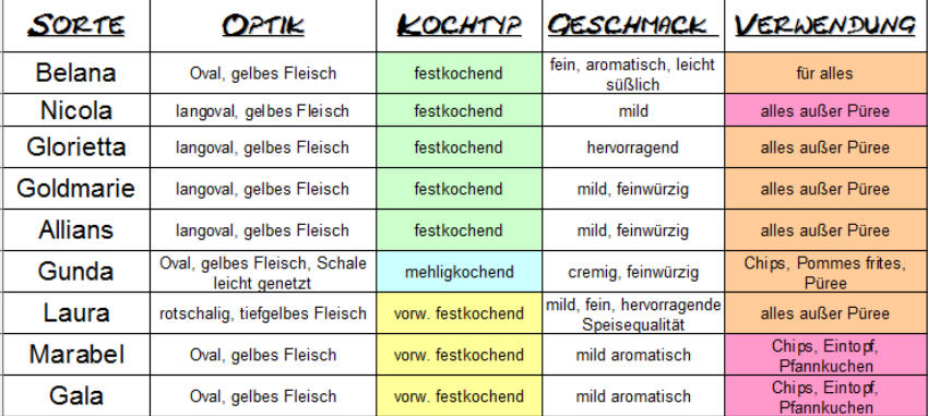 innen schön locker. Beispiele für Zubereitunngsmöglichkeiten sind Salzkartoffeln,